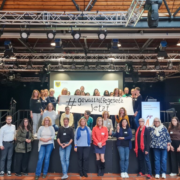 Am 09.09.2024 forderten Frauenberatungsstellen und Frauenhäuser in ganz Nordrhein-Westfalen mit einem Aktionstag die Umsetzung des Gewalthilfegesetzes.